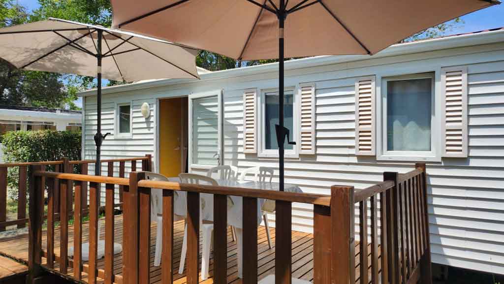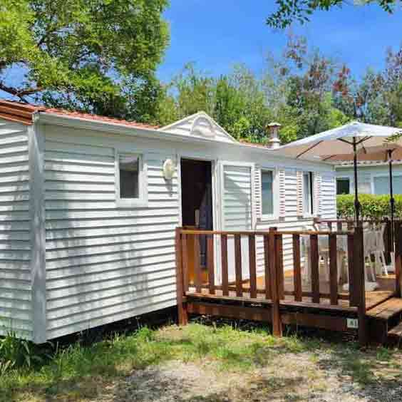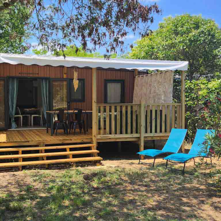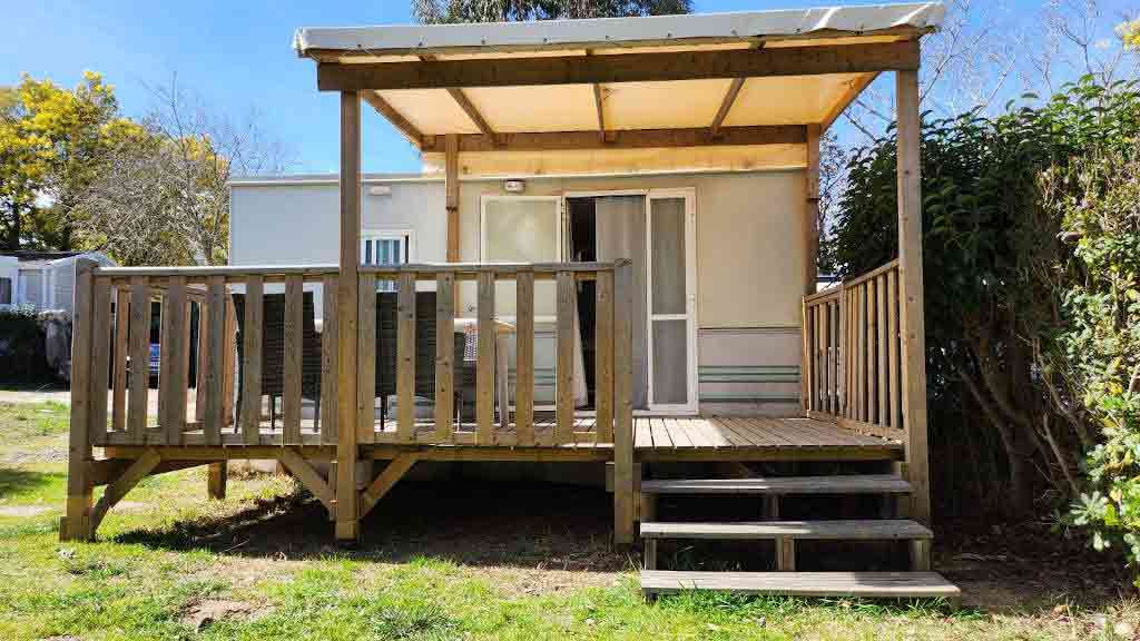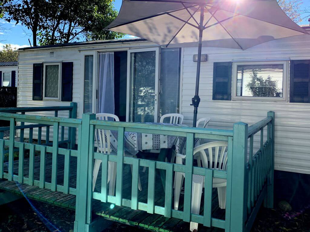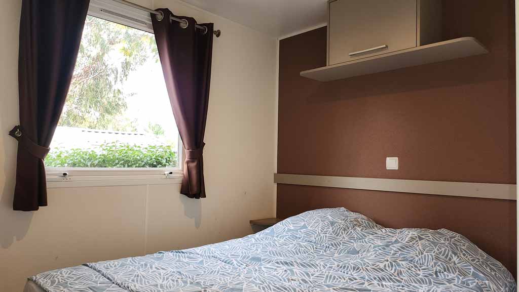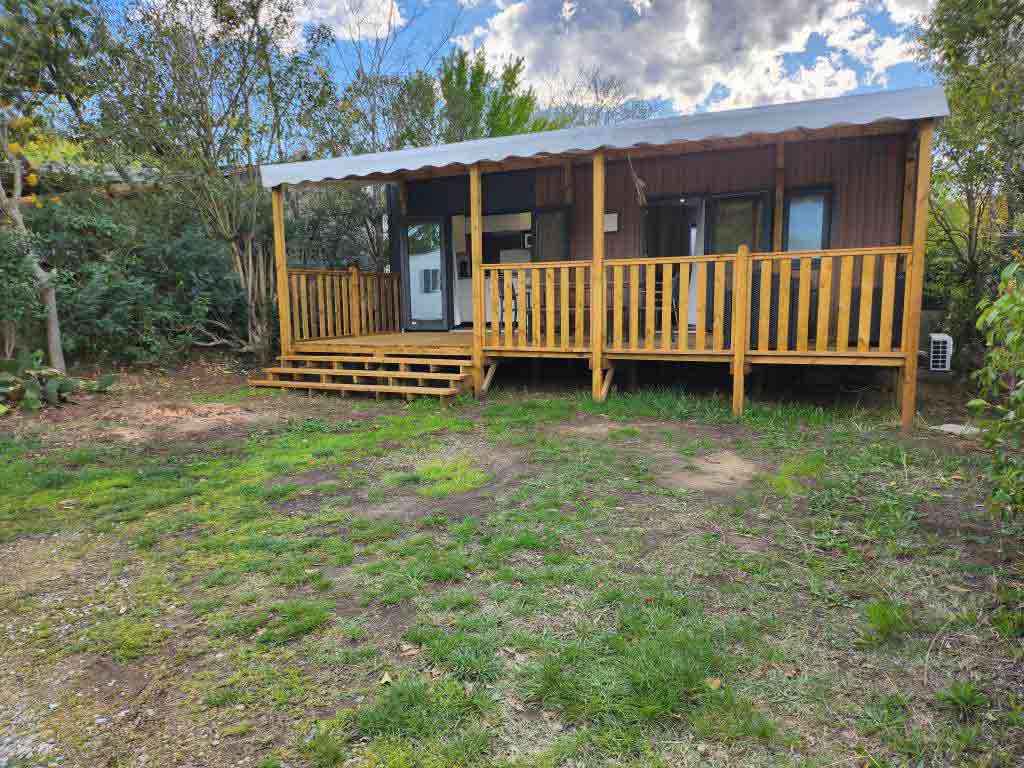Equipement : Climatisation (option 30€ /semaine), frigo-congélateur, hotte, cafetière senseo, micro-ondes, gazinière 4 feux.