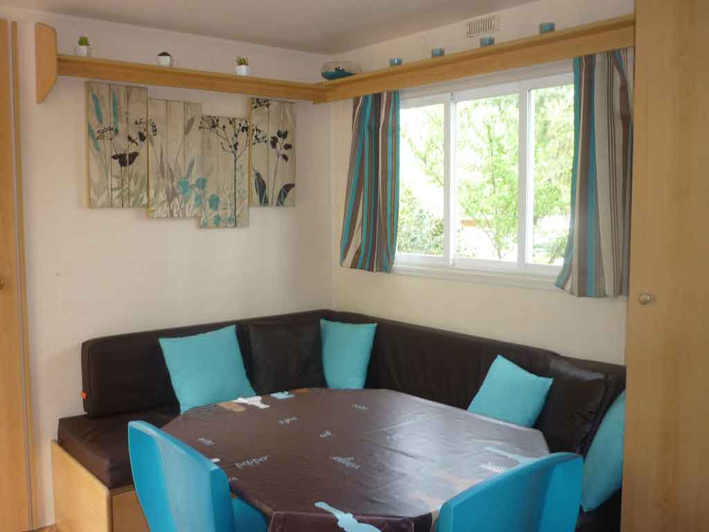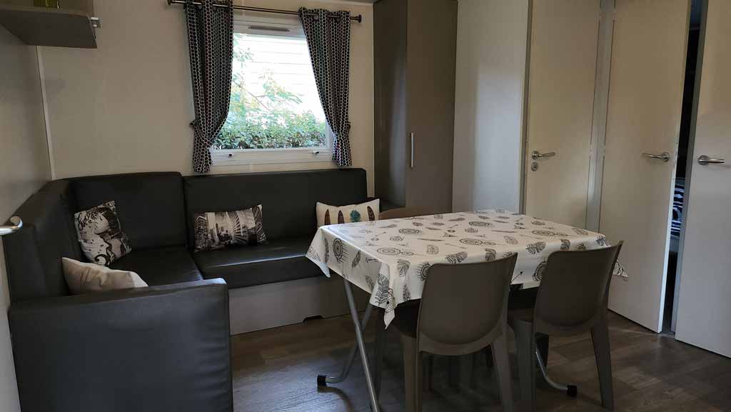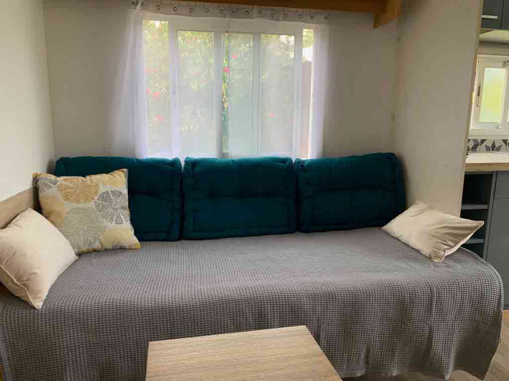 - Salon/cuisine équipée avec banquette d'angle